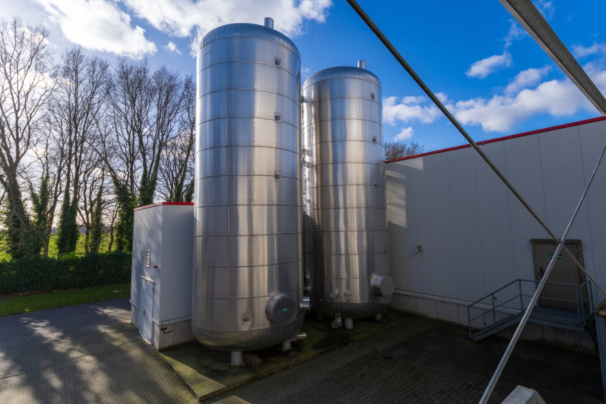 - Speicherung der Abwärme in zwei 100 m³ großen Schichtspeichern zur Entkopplung von Wärmeangebot und -bedarf